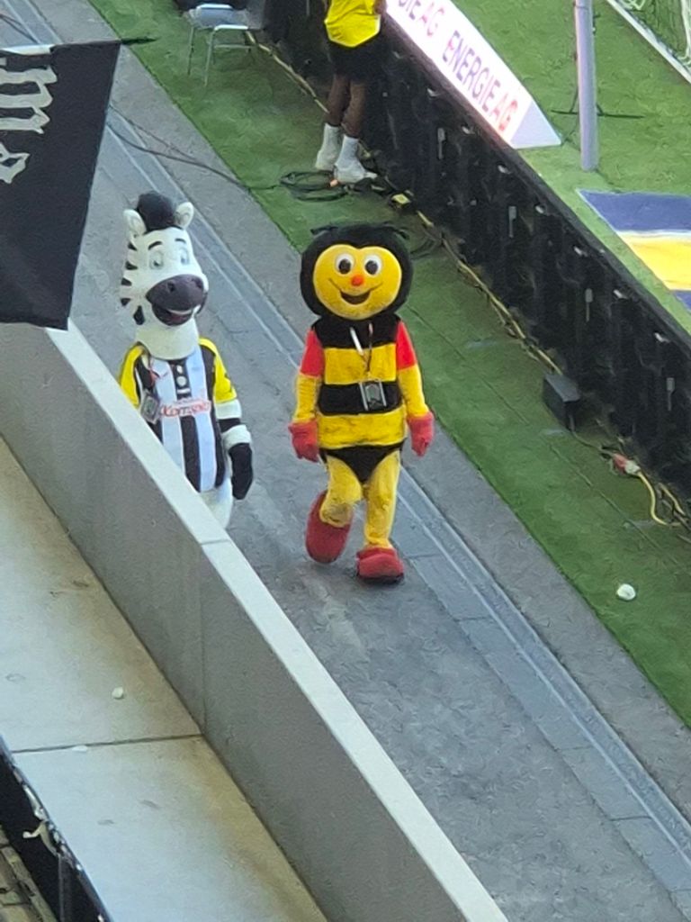 Nach den ersten 20 Minuten konnte man die wenigen Altach Fans kaum noch wahrnehmen. Das Spiel bot neben den teilweise wunderschönen Toren, aber sonst kaum Highlights. Auch von den Fanszenen kam relativ wenig. Besonders nervig finde ich die wirklich schlechte Shuttle Situation mit Bussen zum Stadion – es werden kaum Sonderbusse eingesetzt. Das könnte man wirklich deutlich verbessern. PS: die Maskottchen sind verstörend hässlich! Und die Biene solltet ihr echt mal wieder waschen.
