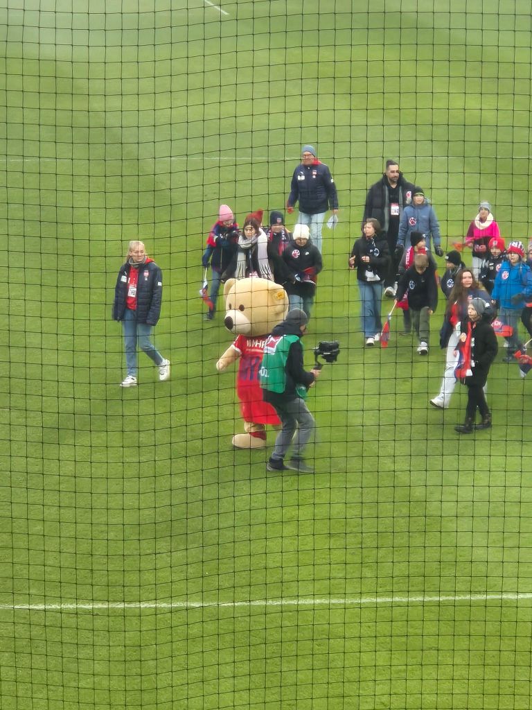 Die Voith-Arena hält einen kuriosen Rekord: mit der Lage auf dem Heidenheimer Schlossberg auf 555 Meter Höhe ist es das höchstgelegene Stadion im deutschen Profifußball. Mittlerweile merkt man allerdings deutlich, dass der 1. FC Heidenheim zu schnell zu groß wurde – überall hakt und zwickt es an der Infrastruktur. In der Schublade gibt es Pläne das Stadion und die Infrastruktur großflächig auszubauen, der Plan dürfte auch vom Bundesligaverbleib abhängig sein. Der Einlass im Gästesektor war eine absolute Katastrophe, völlig sinnfreier Aufbau der Gitter, dazu wurden sehr junge Secu Arbeiter*Innen von älteren gedrängt „strenger“ zu kontrollieren. Der Dude der mich kontrollierte war so überfordert, dass er anordnete das ich meine Jacke ausziehen soll – und meine vollen Hosentaschen völlig ignorierte. Das Stadion ist mittlerweile viel zu klein geworden, man ist dafür aber extrem nah am Spielfeld. Die Fanszene von Heidenheim zeigte sich sehr sympathisch und laut. Bei uns wars natürlich auch dauerhaft sehr laut.