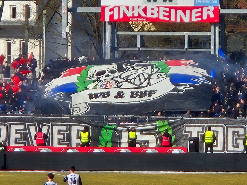 Die Geschichte des SSV Ulm ist eine aus Höhen und Tiefen – meist gabs Tiefen. In der Saison 1999/2000 spielte man eine Saison in der Bundesliga, 2014 spielte man nach der dritten Insolvenz in der Oberliga. Die Neugründung des Vereins datiert sich auf den März 2009. Das Donaustadion wurde 1925 eröffnet und erfüllt absolut keine Normen mehr für eine Profiliga, aktuell spielt Ulm mit einer Ausnahmegenehmigung für die Saison 24/25. Wie es mit dem Stadion weitergehen soll, wird im Laufe der nächsten Monate entschieden. Super ist die Lage innerhalb der Innenstadt, das Stadion ist von Wohnhäusern umgeben. Hat man mittlerweile ja leider eher selten. Es gibt deutlich schönere alte Stadien – aber so ein Stadion in der 2. Liga als Spielstätte zu haben ist schon was besonderes. Also könnte alles halbwegs cool sein in Ulm – wenn sich die Fanszene nicht sehr weit politisch rechts außen positionieren würde und sich schon mal mit verurteilten straffälligen Neonazis solidarisieren würde, die natürlich aus ihren eigenen Reihen kommen. Es wird jede Menge rechte Szenekleidung getragen und auf dem Klo findet man an den Wänden rassistische und fremdenfeindliche Sticker. Der Verein versucht bisher das ganze einfach wegzuignorieren. https://www.swr.de/sport/fussball/ssv-ulm-1846-fussball/rechte-fanszene-beim-ssv-ulm-1846-fussball-100.html