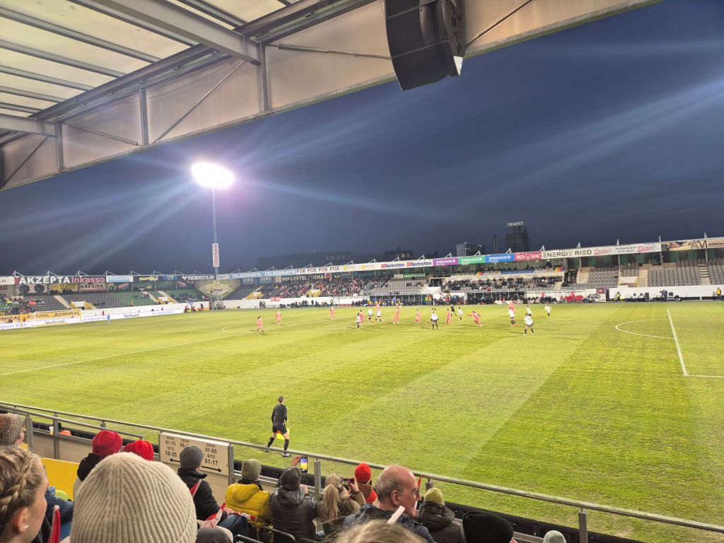 In der Innviertel Arena in Ried stand der erste Spieltag der Nations League der Frauen an. Vor Ort war es sehr kalt, dazu gabs den typischen kalten Wind aus dem Innviertel. Rund 50 Fans fanden sich auch aus Schottland ein, die in der ersten Halbzeit super supporten, in der zweiten Halbzeit aber größtenteils durch die für Schotten sehr günstigen Alkoholpreise ausfielen. Diesmal gabs beim Catering auch das normale Angebot, bei meinem letzten Besuch in Ried bei einem Frauen Länderspiel war das Catering Angebot nämlich leider sehr stark eingeschränkt. Neben paar Österreich Rufen gabs auch jede Menge Rainhard Fendrich auf die Ohren. Allerdings war das Stadion diesmal doch sehr schlecht besucht, großartig Stimmung kam nicht auf. Dazu fror man im Laufe der Zeit gefühlt ein. Viel mehr gibts dazu auch nicht zu schreiben, spielerisch schwaches Spiel mit besserem Ausgang für Österreich. So richtig warm werde ich bisher mit Länderspielen ja nicht.