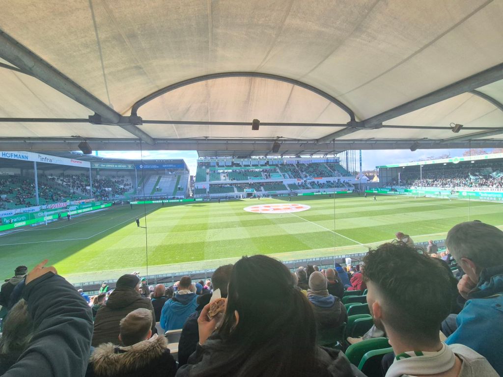 Das Stadion wurde 1910 am selben Ort erbaut, damit gehört Greuther Fürth zu den Vereinen die am längsten an ihrem Originalstandort spielen. Es folgten dutzende Umbauten und Modernisierungen – zuletzt beim Aufstieg in die 1. Bundesliga in der Saison 2021/22. Das Stadion wirkt aber weiterhin sehr durcheinandergewürfelt und hat jede Menge Charme. Auch der Außenbereich ist teilweise sehr wild gestaltet. Leider ist der Kioskbereich weiterhin eine absolute Katastrophe, seit meinem letzten Besuch wurde mittlerweile immerhin Kartenzahlung eingeführt, aber man muss so absurd lange anstehen. Einfach nur nervig.