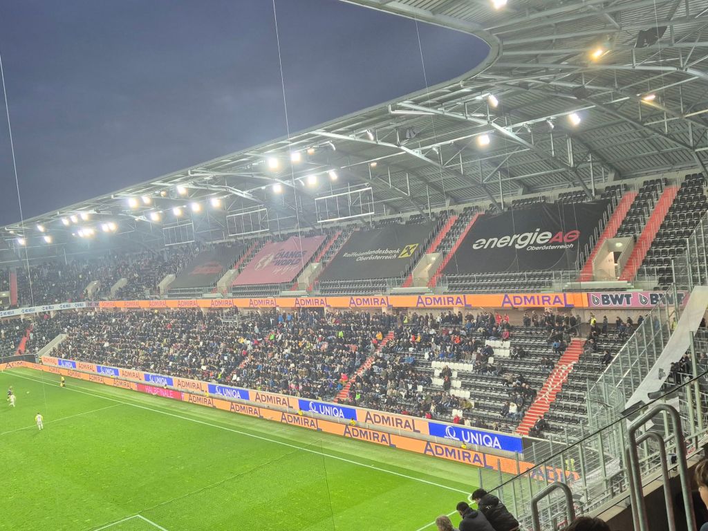 Direkt nach Feierabend ging es an einem Mittwochabend nach Linz, zum ÖFB Cup Halbfinale. Diesmal stand auch keine längere Stadionzeit an, sondern pünktlich zum Spiel ankommen, aber ich kenne das Stadion ja schon gut. Zum Start muss ich direkt mal randen – mit der App „Car-O-Mobility Service“ bekommt man mit dem Kauf eines Tickets einen Fahrausweis für Linz ausgestellt – und als Belohnung für die Nutzung der Öffis einen Rabatt auf den Kiosk Verkauf im Stadion. Also eigentlich, denn kein Mensch ist fähig oder gewillt diesen Rabatt dort einzulösen: „kenn ma ned“, „gibts ned“, „wos is des“. Immerhin wurde mir nach Kommunikation mit den App Betreibern zugesichert die Kiosk Stände nachzuschulen – ich hab eigentlich keine Hoffnung, werde euch aber beim nächsten LASK Spiel davon berichten.