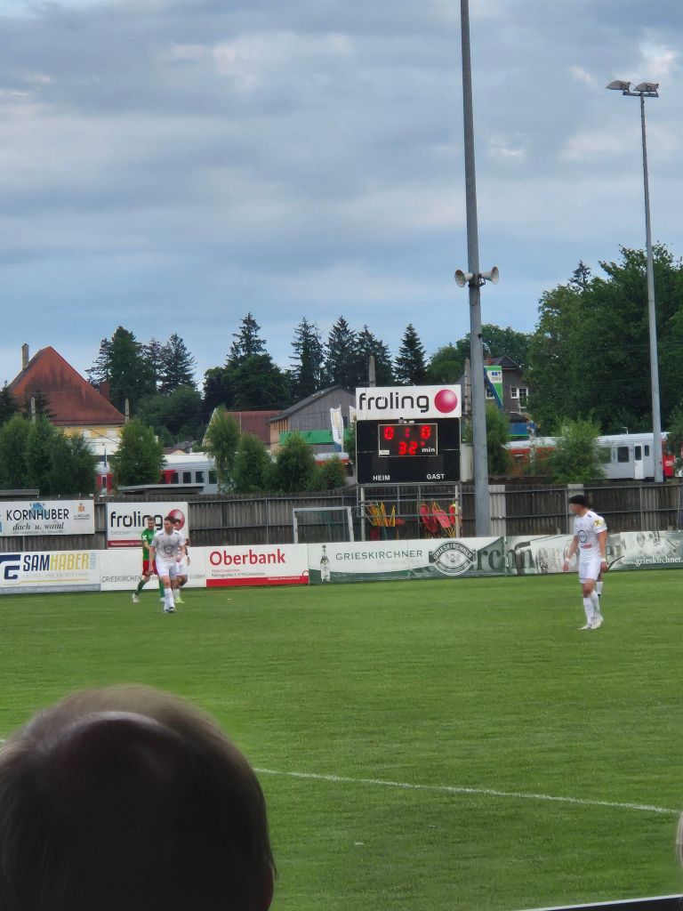 Grieskirchen ist eine Stadtgemeinde in Oberösterreich mit rund 5200 Einwohner*Innen. Von 1810 bis 1816 gehörte die Stadt übrigens zu Bayern. Die Altstadt ist durchaus sehenswert, aber auch sehr verschlafen. Aber wir wollen ja natürlich ins Fröling-Stadion. Der SV Grieskirchen wurde 1945 gegründet und erlebte seine besten Zeiten in den 1970er Jahren. 1967 wurde das aktuelle Stadion eröffnet, und ich vermute seitdem auch nicht mehr renoviert – es ist wirklich alles dort renovierungsbedürftig. Es gab einen Bosna/Würstel Stand , aber leider waren die gar nicht mal so gut. Spielerisch gestalteten die Nachwuchsmanschaft des FC Hertha Wels das Spiel, konnte aber nicht treffen – und kassierte dafür ein unglückliches Gegentor. Dabei gabs einen äußerst peinlichen „Trompete vom Band“ Torsound. Fazit: Ground erledigt, Stadt angeschaut – schönen Freitagabend gehabt – nochmal wirds aber definitiv nicht nach Grieskirchen gehen.