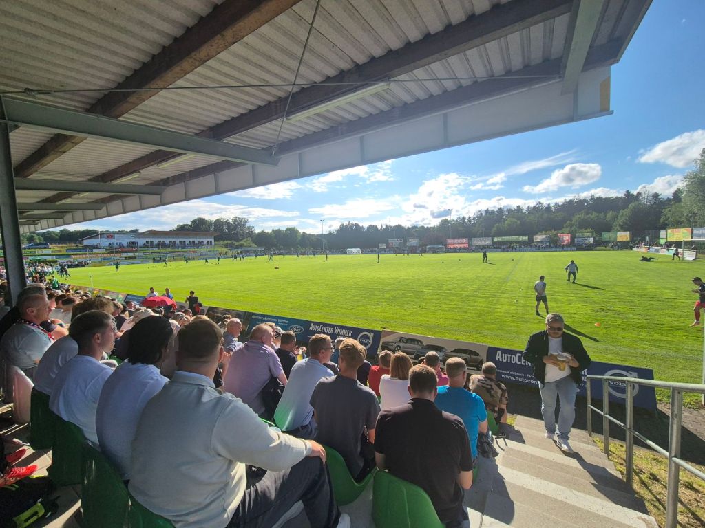 Derbytime in Passau, sehr kurze Anreise für mich – und es wird direkt Historisch. Noch nie trafen der Passauer Ortsteilverein Schalding-Heining und Hauzenberg in einem Ligaspiel aufeinander. Und die Massen kamen, über 2000 Zuschauer*Innen gab es in dem Stadion schon ewig nicht mehr. Zum Glück reagierte Schalding-Heining richtig gut drauf und stellte jede Menge weitere Imbissbuden auf. Aber einen Platz zu finden, an dem man weder komplett im Weg stand oder gar das komplette Spielfeld sah war fast unmöglich. Besonders negativ fiel mir dabei paar Kinder auf, die hinter dem Tor versuchten den gegnerischen Torwart zu nerven, dass ganze war aber so dermaßen niveaulos – da hätten die Eltern wirklich gerne eingreifen dürfen, die waren aber vermutlich zu betrunken dafür. Auch leider negativ: über 2000 Leute und keine große Stimmung. Hauzenberg die den erstmaligen Aufstieg in der Vereinsgeschichte noch mit massenhaft Pyro gefeiert hatte ist in der Realität angekommen: bisher jedes Spiel verloren und eine Stimmungskurve gibts dort nicht – aber paar Zaunfahnen. So gab es bei dem Spiel mal bei kleinen Aufregern hitzige Diskussionen, aber nichtmal der Stadionsprecher konnte die Menge zum Anfeuern bringen und gab diese Versuche dann auch relativ schnell auf. Sehr Schade. Was mich auch nervt: das Stadion ist wirklich nur Semigut mit Öffis zu erreichen und die Stadt stellte wieder Shuttlebus zu dem nächstgrößeren Parkplatz. Vielleicht könnte man 2025 auch mal an Sonderbusse die ins Stadtzentrum zurückfahren denken. Sollte eigentlich nicht zuviel verlangt sein, ist es aber scheinbar immer noch.