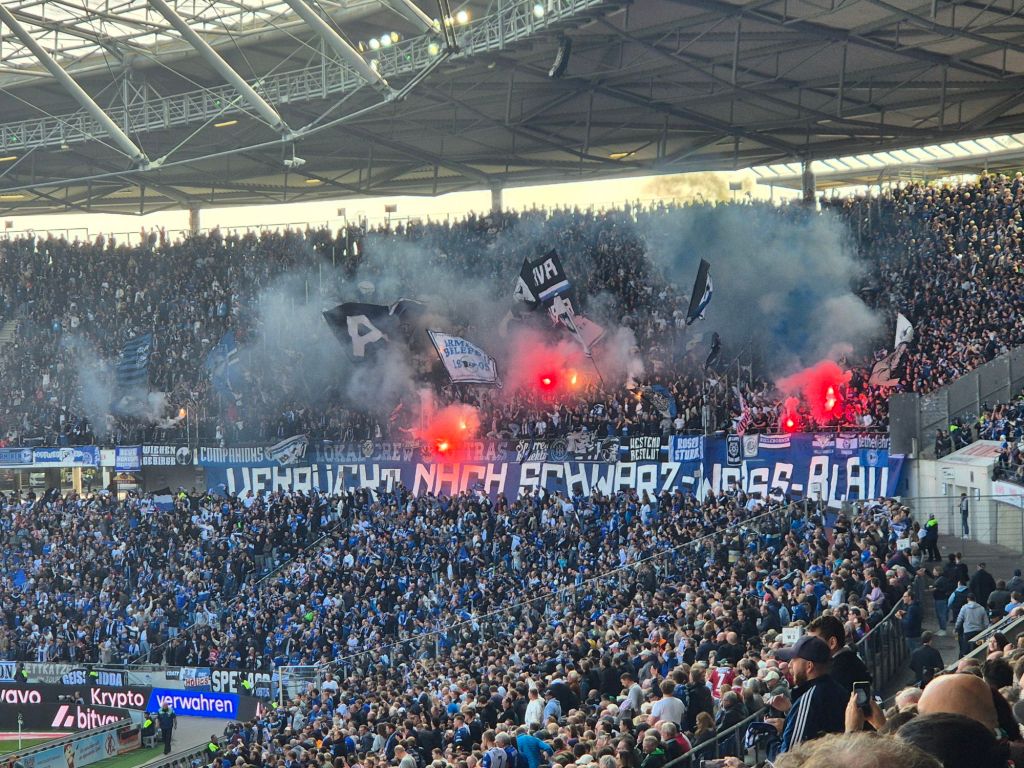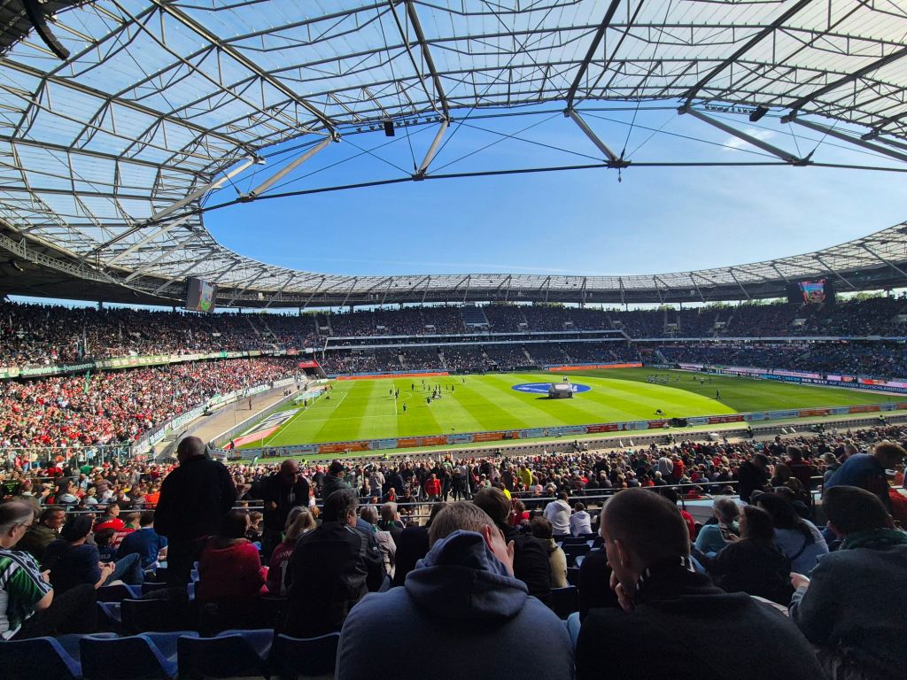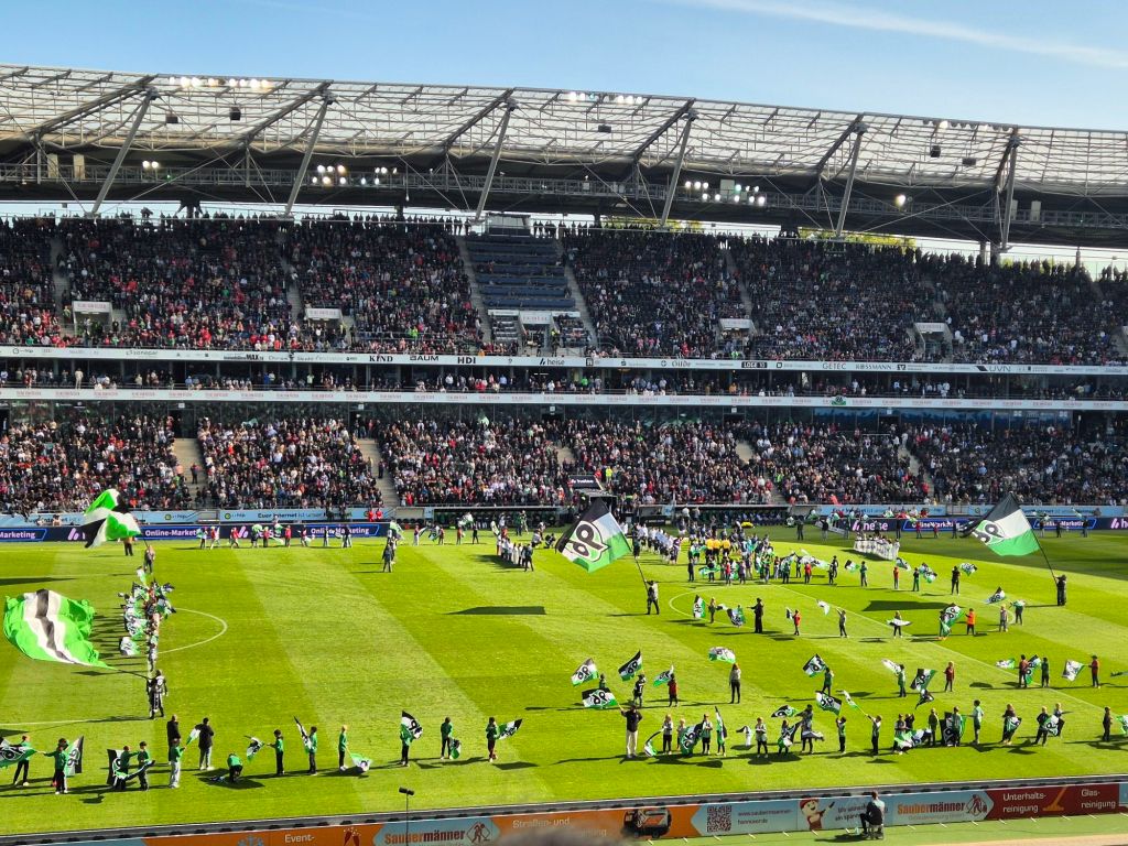 Zum Abschluss der Hannover Reise ging es zum absoluten Highlight: 2. Liga in der ausverkauften Heinz-von-Heiden-Arena. Dazu gegen die befreundeten Bielefelder. Die Stimmung war top, überall in der Stadt versammelten sich Hannover und Bielefeld Anhänger gemeinsam. Es wurde gemeinsam zum Stadion gelaufen, getrunken, gesungen. Die Stimmung war fantastisch. Die Heinz-von-Heiden-Arena wurde 1954 als Niedersachsenstadion errichtet und seitdem mehrfach umgebaut. Zeitweise war es das zweitgrößte Stadion in Deutschland. Architektonisch ist es wirklich schön, hat mir absolut gefallen. Überraschenderweise ist es kaum steil. Nun zum negativen Punkt (muss jetzt kurz sauer werden): um in den Oberrang auf der Westtribüne zu kommen gibt es bereits am Zaun eine Ticketkontrolle. Hier drängen Menschen aus mehreren Richtungen auf eine kleine Öffnung im Zaun zu. Völlig scheiße gemacht, will mir hier nicht ausmachen was passiert wenn eine Person in Panik geraten würde. So etwas 2025 noch zu planen bedarf einer völligen Realitätsverweigerung. Auch die Wege im Oberrang sind scheiße gemacht, die Menschen an den Kiosken stauen sich so weit zurück, dass sie mit den Menschen die auf die Tribünen gingen kollidierten. Auf dem Platz folgte hatten wir super Sicht sowohl auf die Hannover Ultras, aber auch auf die Bielefelder. Und waren wirklich beide super. Bielefeld setzte mehr Pyro als Stimmungselement ein, aber auch Hannover erzeugte eine super Stimmung. Fußballerisch ging das Spiel lange hin und her – und war deutlich knapper als das Ergebnis aussagt. Aber dann kam endlich mein absolutes Highlight: nachdem mich der Fußballpodcast Dwids darauf richtig eingestimmt hatte, verschob ich sogar meine Pinkelpause um den Unmöglichen Superschuss nicht zu verpassen. Aus 20 Meter muss ein Zuschauer oder Zuschauerin in einen 50 cm Durchmesserloch treffen. Dann gewinnt man ein Auto. Nachdem noch nie jemand dieses Loch getroffen hat, gibt es nun ein zweite (größeres) Loch. Wenn man dieses trifft, gewinnt man einen Tagespreis. Auch an diesem Tag sollte der Teilnehmer keines der beiden Löcher treffen. Was stand jetzt übrigens weiterhin so ist. Danach folgte meine verdiente Pinkelpause und die zweite Halbzeit in einem super anzuschauenden Fußballspiel. Hat wirklich Spaß gemacht. Völlig absurd ist noch wie der Rasen vor Anpfiff vollgemacht wird. Kinder, Maskottchen, Fahnenträger – gefühlt jeder steht auf dem Rasen.