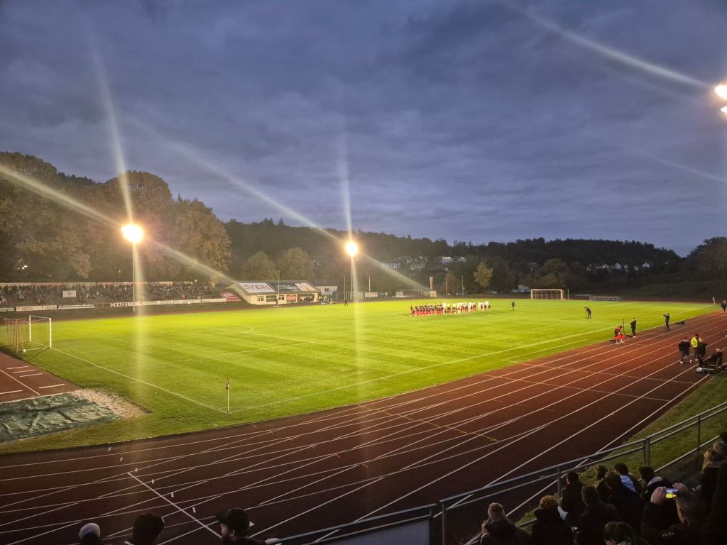 Hauzenberg ist eine Stadt in Niederbayern mit rund 12.000 Einwohner*Innen und der örtliche Verein ist zum ersten mal in der Geschichte (völlig überraschend) in die Bayernliga Süd aufgestiegen. Mit dem Bus ging es von Passau nach Hauzenberg, zurück via Anhalter – da fährt zu der Uhrzeit nichts mehr. Funktionierte aber perfekt. Der FC Sturm Hauzenberg wurde am 20. Juni 1919 gegründet. 1973 wurde das aktuelle Stadion, dass Staffelbergstadion eingeweiht. Bei einigen Gesprächen vor Ort, kristallisierte sich heraus das alle Bock auf die Landesliga haben, aber der (Zeit)Aufwand für einen kleinen Amateurverein immens ist, quasi alle stellen sich nur auf eine Saison ein. 1860 München mobilisierte weil die erste Mannschaft an dem Tag nicht spielte, auch groß für das Spiel – und so kamen im tiefsten Niederbayern 1300 Leute zusammen. Dafür war organisitorisch wirklich alles perfekt geregelt. Keine großen Warteschlangen, weder beim Einlass – noch bei der Getränke oder Essensausgabe. Und alle rechneten mit einem klaren Sieg des Tabellenersten 1860 München II gegen den Tabellenletzten Hauzenberg. Und 1860 rannte an und vergab Chance für Chance. Und kassierte irgendwann einen Gegentreffer und rannte weiter vergeben an. Zum Schluss gab es einen Platzsturm, feiernde Spieler – und den Gewinn der Meister… äähh nein, es war doch „nur“ der Sieg gegen den Tabellenersten. Immer wieder schön, solche Überraschungen zu erleben. Zum Schluss gab es dann auch noch witzige Pöbeleien mit 1860 und Hauzenberg Fans, blieb aber alles friedlich und war äußerst unterhaltsam. Danach organisierten wir uns noch eine Mitfahrgelegenheit und hatten ein gutes Autogespräch. Fazit: Super Abend!