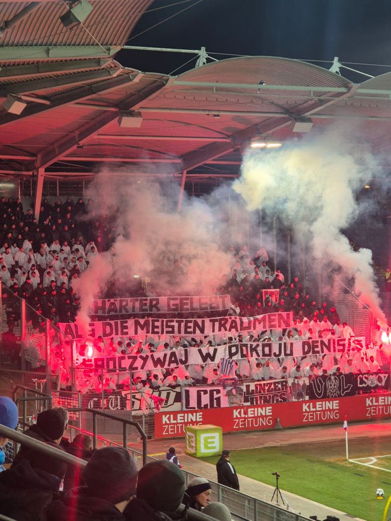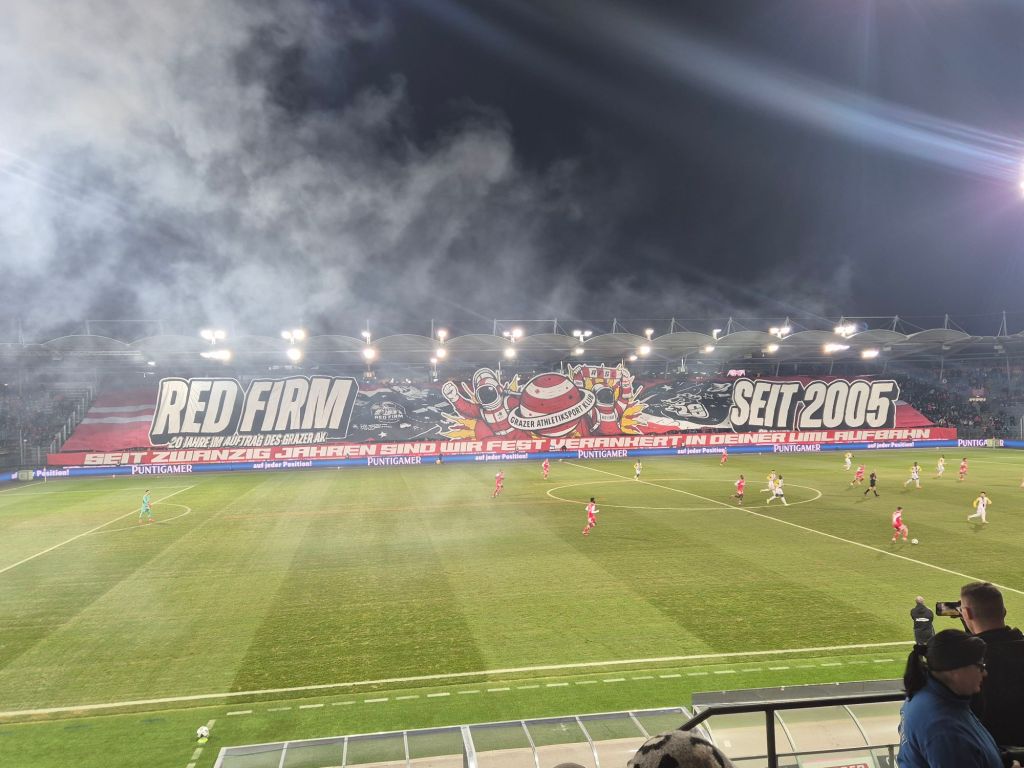 Graz ist mit rund 305.000 Einwohner*Innen die zweitgrößte Stadt in Österreich und die Landeshauptstadt der Steiermark. Wegen der schlechten Zugverbindung nach Graz war das für mich auch ein erstmaliger Besuch der Stadt – und ich kann die wunderschöne Altstadt nur absolut empfehlen. Sturm Graz und der Grazer AK teilen sich die Merkur Arena. Das Stadion wurde 1996 neu erbaut und als „Arnold Schwarzenegger Stadion“ eröffnet. Arnold Schwarzenegger entzog 2005 der Stadt Graz das Recht auf die Verwendung seines Namens, nachdem er in Österreich deutlich wegen seiner Politischen Tätigkeiten in Kalifornien in Kritik stand. Das Stadion ist mittlerweile veraltet und hat keine Lizenz mehr für Internationale Wettbewerbe, Sturm Graz trägt Champions League Spiele in Klagenfurt aus. Beide Vereine und die Stadt diskutieren lange über eine zwei Fußballstadien Lösung, 2024 erfolgte die Entscheidung die Merkur Arena auf über 20.000 Plätze auszubauen und für die Champions League zu modernisieren. Bis jetzt gibt es aber keinen Plan für einen Baubeginn, die zwei Vereine und die Stadt konnten sich bisher nicht auf einen Finanzierungsplan einigen. Aber bevor das Stadion umgebaut wird, sicherheitshalber mal erledigen. Überrascht wurde ich mit einer großen Choreo auf der Hauptribüne – die wohl vom Verein ausging und einer von den Ultras vom LASK. Hier wurde der 13.12 absolut passend für Polizeikritik genutzt. Fantechnisch ist der GAK der kleinere Grazer Verein und hat nur einen Zuschauerschnitt von rund 4000 Menschen. Da konnte man das Stadion als Groundhopper auch noch mit leeren Blöcken bewundern, ich hoffe bei einem Umbau wird das markante Stadiondach bleiben. Von den Grazer Ultras kam dann auch nicht viel bei mir an, die Ultras von LASK hatten einen sehr stabilen Gästeauftritt. Spielerisch konnten die wiedererstarkten Linzer sich souverän durchsetzen und gingen als Zweiter der Österreichischen Tabelle in die Winterpause. Insgesamt ist alles (wie so oft in Österreich) etwas zu teuer in Graz, aber sehr schönes Stadion.