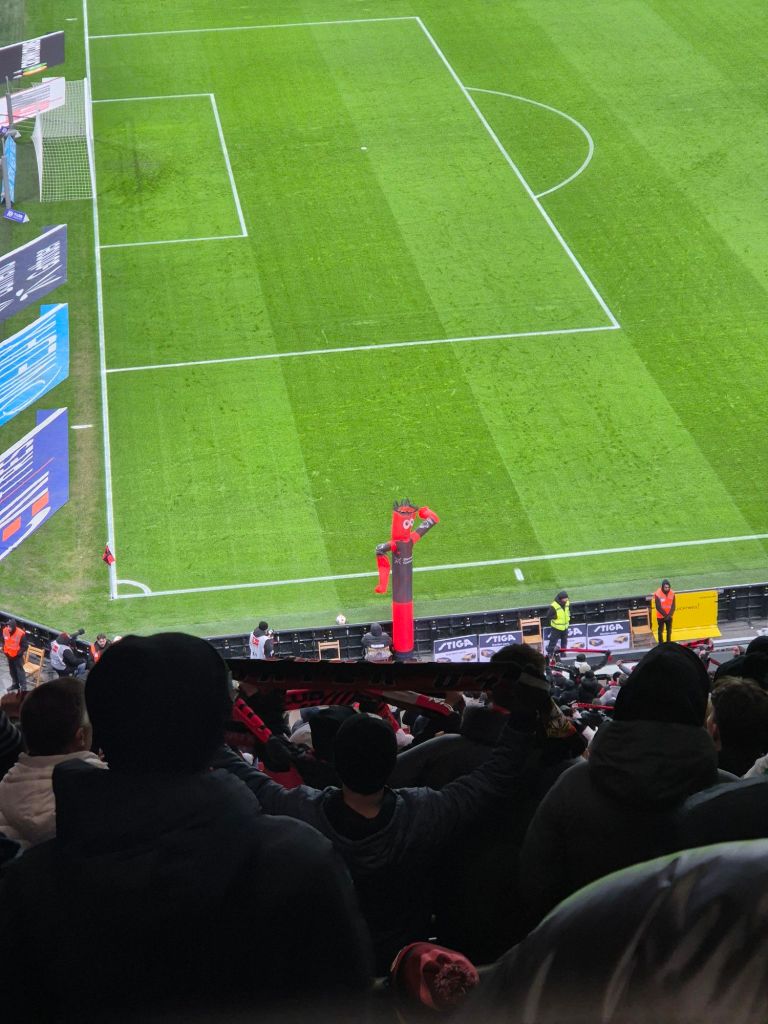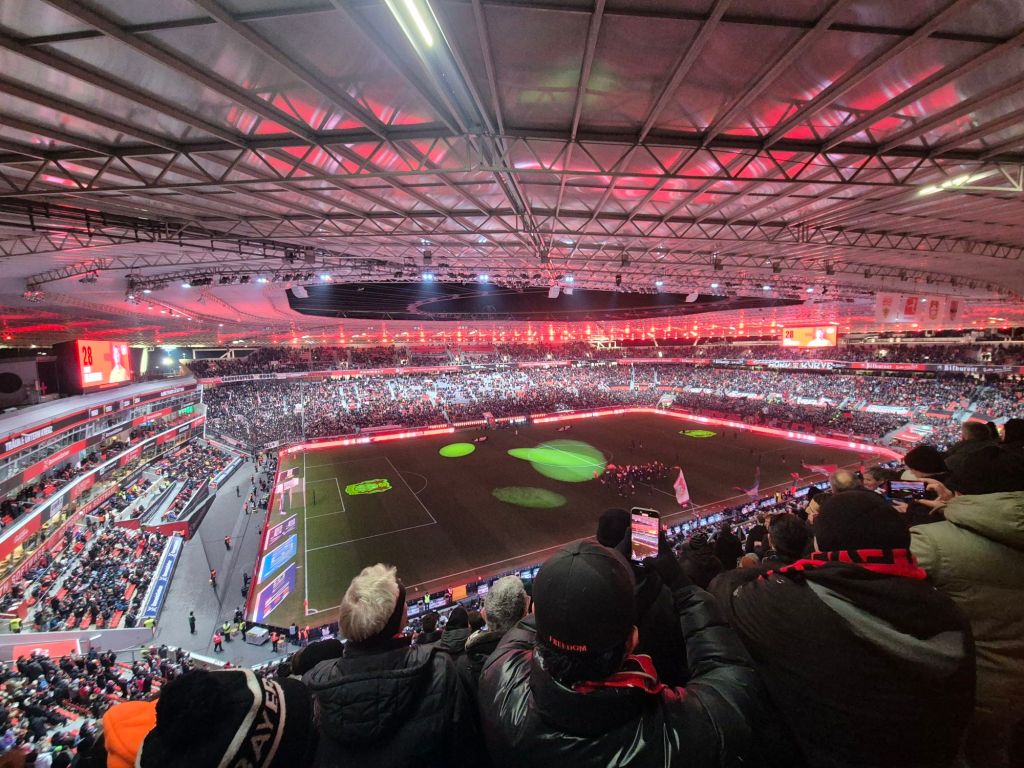 Anfang Januar – die Schneewalze rollt ungewohnterweise über den Norden Deutschlands – Deutschland friert ein. Alles ist kalt, nass und trostlos – nach kurzer Überlegung: eigentlich muss man da was machen, worauf man auch bei guten Wetter absolut keinen Bock drauf hat. Also ab nach Leverkusen. Leverkusen ist eine Planstadt, die erst in den 70er Jahren im heutigen Stadtbild entstand. Rund 169.000 Einwohner*Innen (das fand ich hart überraschend) wohnen in der Stadt in Nordrhein-Westfalen. Der Hauptarbeitgeber dort ist sehr überraschend: Bayer. Außerdem ist es wirklich hässlich dort. Ich glaub zur Geschichte von Leverksuen muss ich euch nicht viel erzählen, die ehemalige Werkself schaffte es in der Saison 2023/24 den „Vizekusen“ Fluch zu brechen und erstmalig Meister zu werden. Die BayArena wurde 1956 erbaut und mehrmalig umgebaut. 1999 wurde kurioserweise ein Hotel an die Nordtribüne gebaut, googelt mal die Übernachtungspreise. 2007 – 2010 wurde die Arena zuletzt umgebaut und auf 30.210 Plätze erweitert. Nun muss ich mal richtig randen: Bayer Leverkusen spielt seit 1979 ununterbrochen in der 1. Bundesliga – und die Ordner*Innen bekommen es nichtmal im Heimbereich hin durch einen reibungslosen und vor allem logischen Ablauf einen schnellen Eintritt ins Stadion zu ermöglichen. Vom Gästeblock hört man ja nur das allerschlimmste. Aber nichtmal im Heimbereich funktioniert es. Vielleicht hat man das ja in 50 Jahren dann im Griff. Positiv überrascht war ich davon wie steil das Stadion ist, ich mag ja Steilkurven sehr gerne – aber wer Höhenangst hat sollte lieber auf den Oberrang verzichten. Danke für die Tickethilfe übrigens! Am selben Tag wurde den Ultras von Leverkusen eine Choreo verboten, worauf man die Banner umdrehte und teilweise auf Support verzichtete, teilweise aber Support leistete. Wirkte etwas unentschlossen. Der Auswärtsblock aus Stuttgart war wie erwartet wieder sehr gut anzuschauen. Mir gefällt ja auch der Stil der Stuttgarter Ultras. Vielleicht sollte von den ganzen Millionenbeiträgen, die mittlerweile im Fußball und auch in Leverkusen kursieren auch mal eine neue Soundanlage für das Stadion gekauft werden – die ist ja sowas von dermaßen unterirdisch. Zwischendurch kam es dann kurioserweise im Familienblock zu einer kurzen aber durchaus heftigen Schlägerei – keine Ahnung warum, aber unterhaltsam wars definitiv. Spielerisch unterhaltsam war das Spiel auch, der VFB konnte innerhalb kurzer Zeit mit 0:4 in Führung gehen. Und nach dem Halbstand verließen bestimmt 20 % das Stadion. Man reitet da weiterhin auf einer Erfolgsfanwelle. Auch einen Menschen aus Südkorea, der mich nach einem Bild für Insta fragte: der übrigens 2 TÜTEN Merch dabei hatte und die erste Halbzeit im Trikot ohne Jacke (inklusive Preisschild) schaute – tauchte nach der ersten Halbzeit nicht mehr auf. Bin mir aber nicht mehr sicher ob die Liebe für den etwas merkwürdigen Verein nach der ersten Halbzeit brach, oder ob er einfach bei Temperaturen unter dem Gefrierpunkt erfroren ist. In der zweiten Halbzeit konnte Leverkusen ein Tor machen, war wichtig für mich: in Leverkusen wollte ich unbedingt die Torhymne hören. Die mag ich und das konnte erledigt werden. Bisschen überrascht hat mich die Anzahl der quasi völlig regungslos besoffenen, keine Ahnung ob das dort immer so ist. Ground erledigt, Stadt erledigt – ich komm nie (vermutlich) nie wieder!