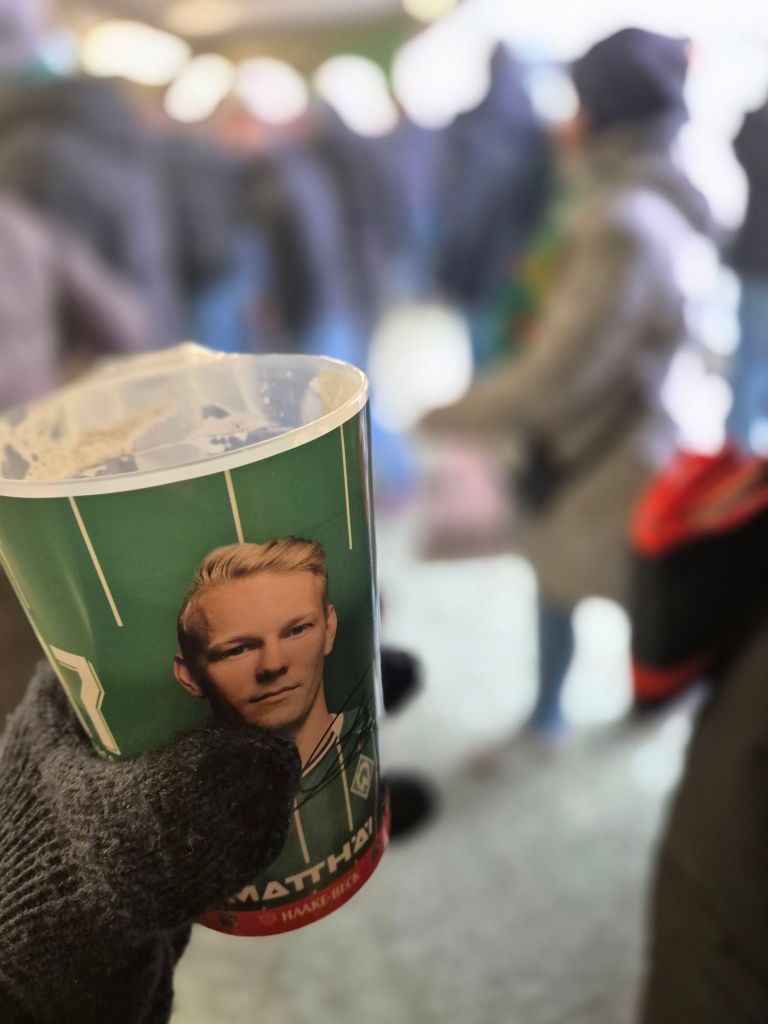 Bremen ist eine Norddeutsche Hansestadt an der Weser und Hauptstadt des Bundesland Bremens – dort wohnen rund 587.000 Einwohner*innen. Werder Bremen hatte schon große Erfolgszeiten, zuletzt pendelte man aber zwischen der 1 und 2. Bundesliga. Das Weserstadion liegt direkt an der Weser im Ortsteil Peterswerder. Nach verschiedenen Umbauten wurde das Stadion zuletzt in der Saison 2011/12 modernisiert. Das Stadion liegt direkt am Rande eines Wohngebiets und das Vorglühen findet direkt zwischen Häuserzeilen statt – hat uns super gefallen und einen sehr englischen Stil. Vielen Dank auch für die Dauerkarten an dem Spieltag! Leider beschränkten wir aufgrund des Windes und der nassen Kälte den Besuch auf maximal kurz davor und danach – es war aber auch wirklich eisig kalt, mit Temperaturen unter dem Gefrierpunkt. Haake Beck wurde natürlich trotzdem probiert und für gut befunden. Bisschen schlecht gelöst wurde, dass man im Innenraum zwar den Fanshop sehen kann – aber nicht reingehen kann. So wurde der Fanschal leider erst nach dem Spiel erworben. Absolutes Highlight neben dem Sichten von Ailton auf der Tribüne – war das absolute Fiebertraumhalbzeitspiel. Zwei Biermaskottchen (Eine Bierflasche Haake Beck und eine Bierflasche Becks) treten gegeneinander in einem wechselnden Spiel an. Wow, völlig bescheuert – aber tolle Halbzeitunterhaltung. Spielerisch trafen hier Not auf Elend – so kam es passenderweise auch zu einem Unentschieden. Es war spielerisch wirklich absolut nichts, von beiden Mannschaften. Fantechnisch haben mich jetzt beide Lager auch nicht umgerissen. Hätte mir vor allem von den Bremen Ultras etwas mehr erwartet. Danach ging es mit Straßenbahnen wieder ins Zentrum – wenn alle 2 Minuten eine Sonderstraßenbahn fährt, wäre es vielleicht wirklich genial nicht wie die letzten Arschlöcher einen von hinten in die Bahn reinzudrücken. In der Straßenbahn gab es dann noch jede Menge verbale Konflikte, die Fahrt war kurz – aber auch ultra Anstrengend. Am nächsten Tag wurde der Werder Bremen Trainer Horst Steffen entlassen. Gegessen haben wir danach in der Markthalle Bremen, den kulinarischen Tipp (man bekommt einfach fast alles darin) möchte ich euch noch mitgeben.