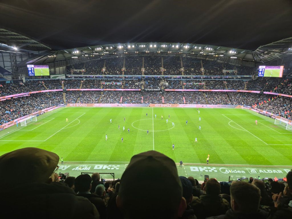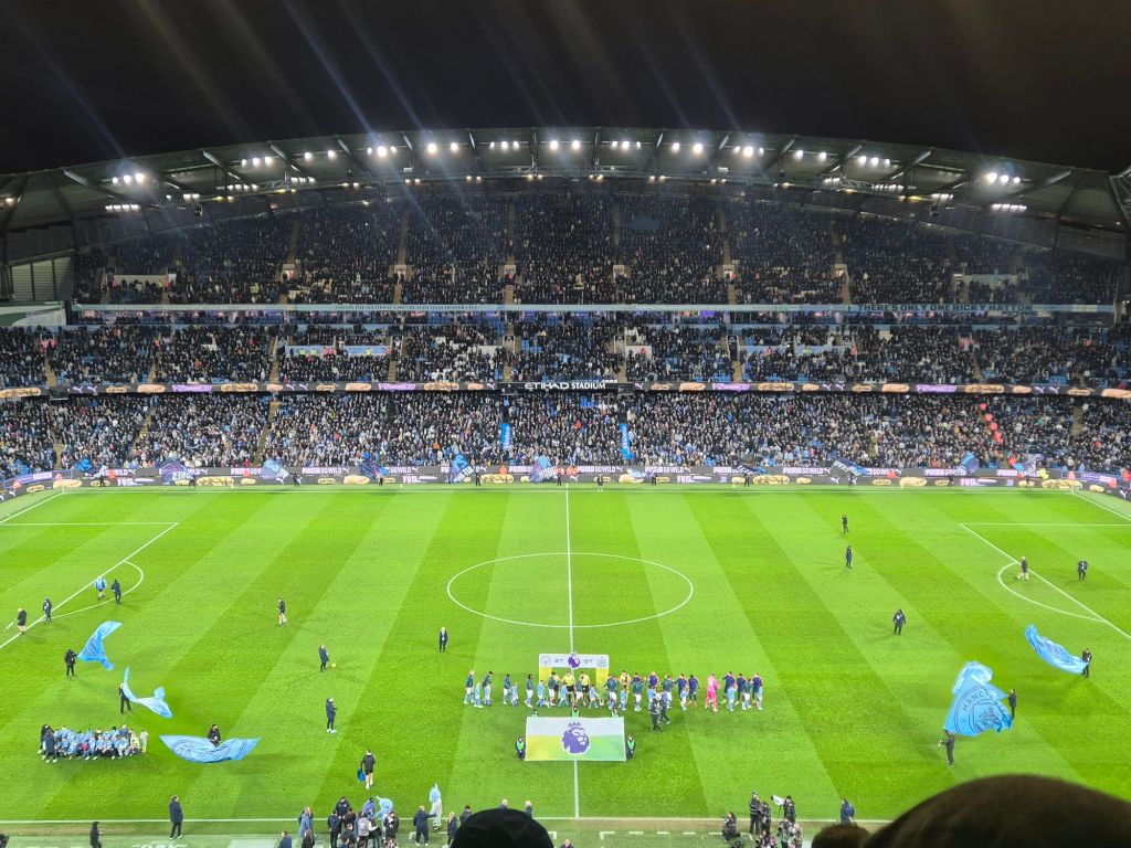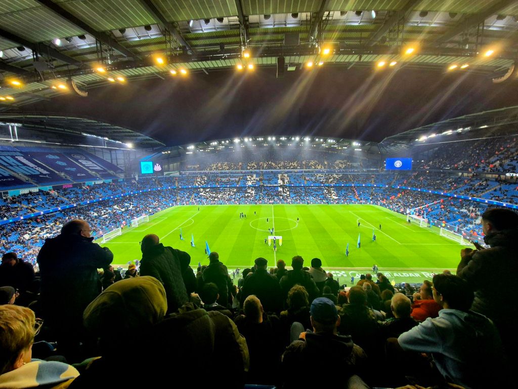 Manchester liegt im Norden von England und hat etwa 570.000 Einwohner*Innen. Die Stadt war für ihre Indistrie bekannt, seit dem Zerfall dieser im 20. Jahrhundert erfindet sich die Stadt quasi neu. Funktioniert bisher in manchen Stadtteilen besser und in manchen schlechter. Schaut euch übrigens unbedingt Anstoßzeiten nochmal in England an, ich war durch die Zeitverschiebung bis 2,5 Stunden vor Anpriff der Meinung, dass das Spiel um 21 Uhr stattfinden wird, waren dann doch nur 1,5 Stunden und wurde fast noch stressig. Zu der Geschichte von City muss ich euch nicht viel erzählen: englischer Traditionsverein, mittlerweile leider im Besitz der Herrscherfamilie des arabischen Emirats Abu Dhabi, die den Verein mit absurden Mengen Geld vollpumpt. Geld nimmt man dabei auch quasi von allen die zahlen: als Biersponsor gibt es in einem englischen Stadion ein schlechtes Japanisches Lager. Logisch oder? Hab ich dann erst gar nicht getrunken. Pies gab es an dem Spieltag übrigens nicht. Skandal! Kommen wir zum Stadion: das Ethiad Stadium ist ein ehemaliges Leichtathletikstadion und wurde für die Commonwealth Games 2002 erbaut, danach aber zu einem reinen Fußballstadion umgebaut. Aktuell finden im laufenden Spielbetrieb Umbauarbeiten statt, um die Kapazität auf über 60.000 Plätze zu erhöhen. Besonders gut hat uns der Aufgang in den Oberrang gefallen, der über stufenlose Rampen stattfindet. Dabei ist das ganze Stadion auch architektonisch sehr sehenswert und hat uns super gefallen.