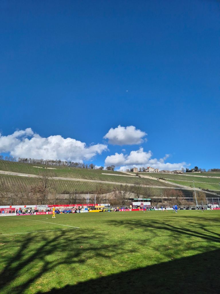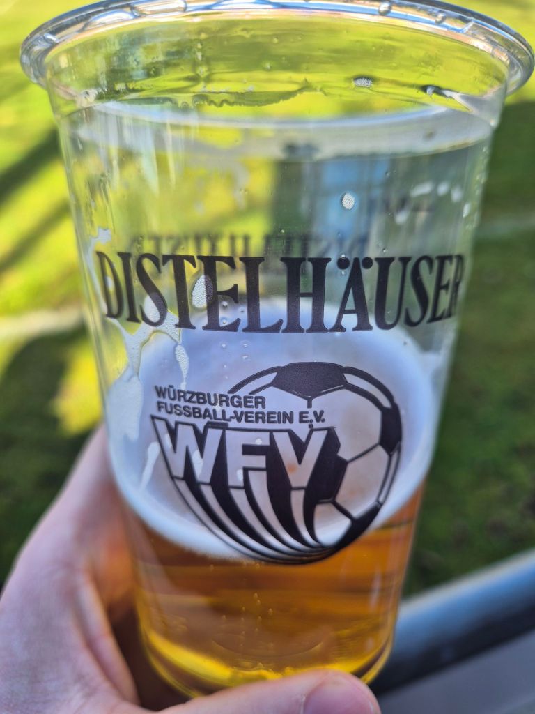 Würzburg ist eine Stadt mit 133.000 Einwohner*Innen und Regierungssitz von Unterfranken. Der Würzburger Fußballverein spielt in der wunderschön am Main gelegenen Sepp-Endres-Sportanlage. In den 1970er Jahren feierte der Vorgängerverein Erfolge und spielte zeitweise in der 2. Bundesliga. Mittlerweile ist man davon aber ganz weit entfernt, und die dort verhassten Würzburger Kickers deutlich erfolgreicher. Immer wieder hat der Verein auch größere finanzielle Probleme. Vor Ort zeigte sich ein unerwartet hohes Polizeiaufgebot: das ganze klärte sich schnell auf, die befreundeten Schweinfurter waren mit der Szene da. Gästefans konnte ich keine erkennen. Grandios war der hohe Anteil an Fußballassi’s sowohl neben der Bande, als auch an freiwilligen Mitarbeiter*Innen. Am Bierausschank klärte uns die etwas fertig aussehende und SEHR langsam reagierende Mitarbeiterin darüber auf, dass sie die ganze Nacht durchgesoffen hat – und darum nun alles etwas langsamer funktioniert. Kundenorientiert! Hatte aber kurzzeitig Angst das sie meine Bierbestellung einfach wegext. Auf der Stehtribüne (wegen der fehlenden Sitzplätze ist das ganze kein Stadion, sondern eine Sportanlage) bildeten die Szene von Schweinfurt und die paar Supporter des Würzburger FV einen nervigen Stimmungsblock. Schweinfurt zog einfach sein normales Programm runter und mehr als 80 % des Spiels gab es dort verbalen Hass auf die Würzburger Kickers. Im Bayernliga Spiel des Würzburger FV gegen Gebenbach. Nunja. Witzigerweise steht mitten im Stimmungsblock eine Straßenlaterne. Deswegen heißt die Fangruppierung der Würzburger auch „Laternos“. Spielerisch war es ganz mühsam, auf dem wirklich miesem Rasen vergab Gebenbach einen Elfmeter und auch sonst funktionierte bei beiden Mannschaften der Spielaufbau kaum. Immerhin wurde diesmal gespielt, bei meinem letzten Besuch dort stellte man 10 Minuten vor Spielbeginn fest, dass der Rasen gefroren war. Alles immer etwas chaotisch dort – aber unterhaltsam. Würzburg konnte das ganze dann doch sehr glücklich gewinnen.